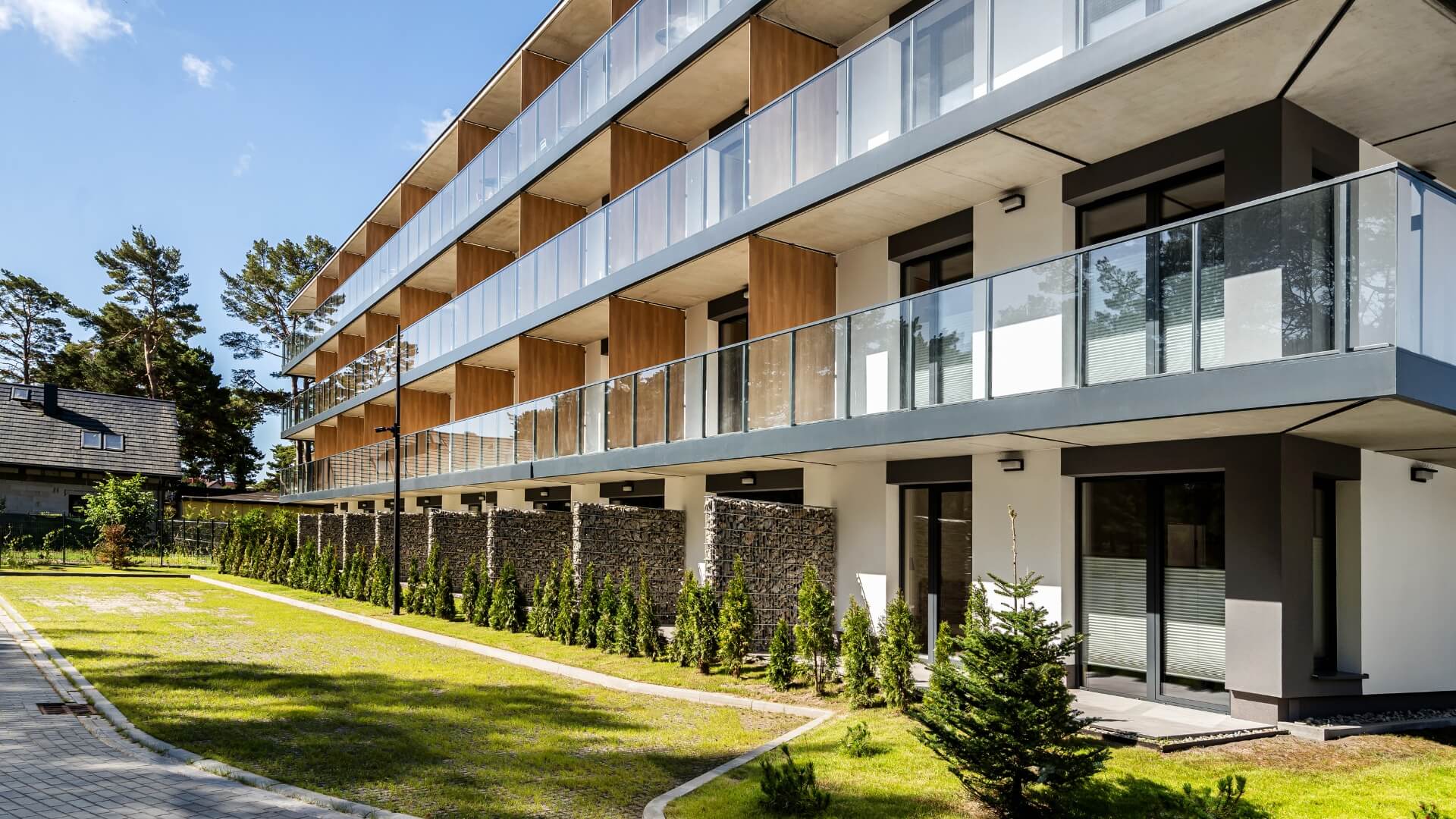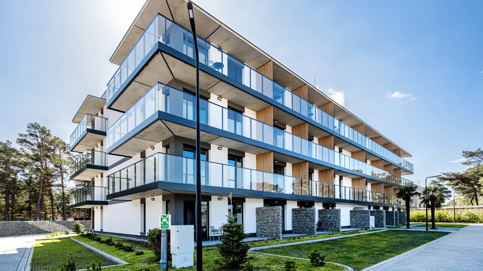 W pierwszym etapie do dyspozycji właścicieli oddano 67 apartamentów 1- i 2-pokojowych o powierzchni od 26 do 38 m². Do każdego apartamentu przynależy ogródek lub taras oraz miejsce parkingowe na zamkniętym terenie kompleksu. Kupujesz w pełni urządzony apartament z aneksem kuchennym, gotowy do użytkowania lub wynajmu od pierwszego dnia.